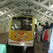 天橋立の傘松公園サイドにあるケーブルカーです。ゴールデンウィークなので混んでおり、座席がなかったので立ってのりました。けっこう急な坂道をけっこうな勢いで登ります。途中から天の橋立を眼下に眺めることができます。