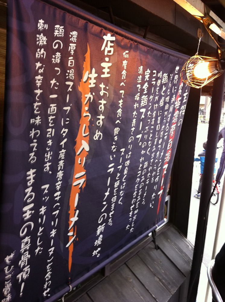 両国国技館から歩いて10分弱。相撲に行ってラーメンというのはどうかとも思いますが、いえ少なくともわざわざ行く価値だってあるラーメン。メニューのベースはひとつだけです。そのひとつに様々なトッピングで楽しむのですが、おすすめは「生からし」と「チャーシュー」と「あじ玉」です。鳥ベースのスープと麺、そしてトッピングの調和がなんとも素晴らしい、個人的には東京一と思っているラーメンです(掲載する写真が2011年2月というだけでその後も何度も足を運んでいます)。