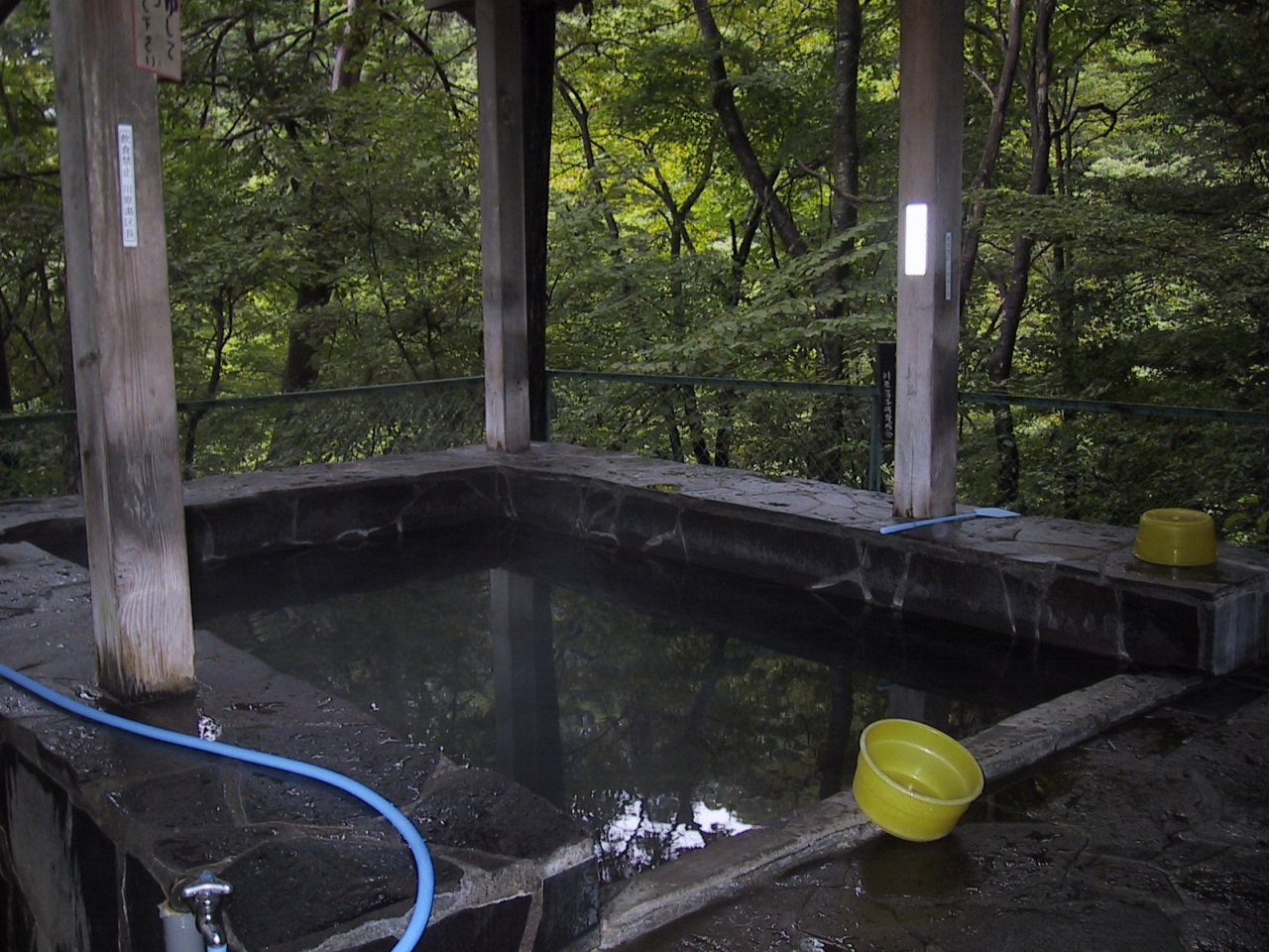川原湯温泉駅から徒歩で15分ぐらいに素朴な温泉街があります。駅降りて坂を登るので坂道上に旅館等が数件立ち並んでします。今回は共同浴場の聖天様露天風呂に行きました。高台にある混浴で無色透明の石造りの湯船です。木々に囲まれ自然の中で入っていると感じます。勿論、石鹸等は置いていないですが桶はありました。