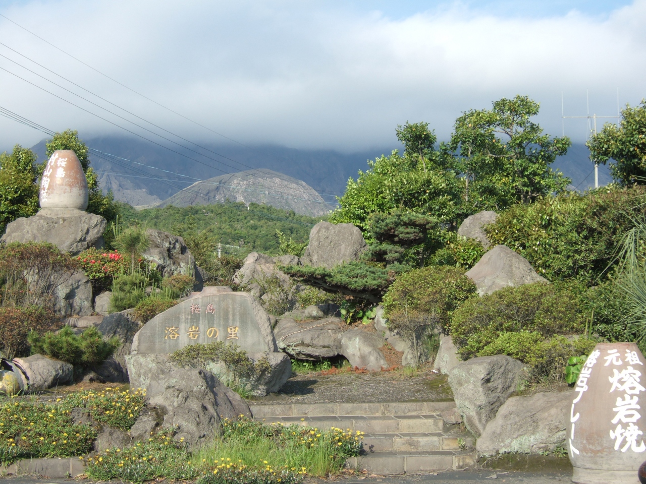 その裏には足湯があり溶岩遊歩道もあります。