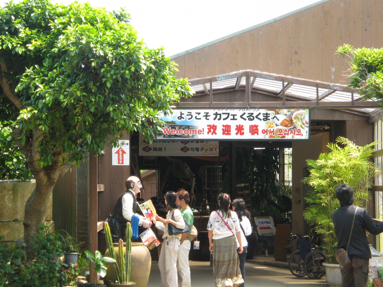 糸満から知念村へ向かって車を走らせていると「カフェくるくま」の看板が見えたので、ちょうどコーヒータイムにしたかったので行って見ました。わき道へそれるように畑道を行くと左手に大きな工場があります。そのとなりにカフェくるくまが有るのですが、行ってビックリ。たくさんの車とお客がいるので、そこがガイドブックにも載るくらいの超有名店だと後でわかりました。アジア料理とハーブで有名らしいです。絶景の高台からの大パノラマを眺めながら美味しいアジア料理でも食べたかったのですが、食事も済ませていたことだし、何より人が多くてなんだか一気にコーヒータイムモードがしぼんでしまい、隣にある売店でウコンを買って出てしまいました。あんなに人が多くなければゆったりしたかったのに。ちなみにくるくまの隣の工場?は仲善といって、は沖縄で有名な薬草ハーブやスパイスなど健康食品関連の会社だそうです。きっとそこの直営店なのでしょうね。
