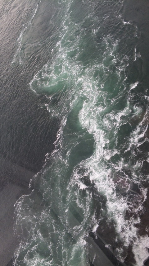 満潮・干潮の前後2時間が観賞時間のようなのですが、若干ピンポイントの時間を過ぎていたせいか、そこまで激しい渦は見ることができなかった気がします。