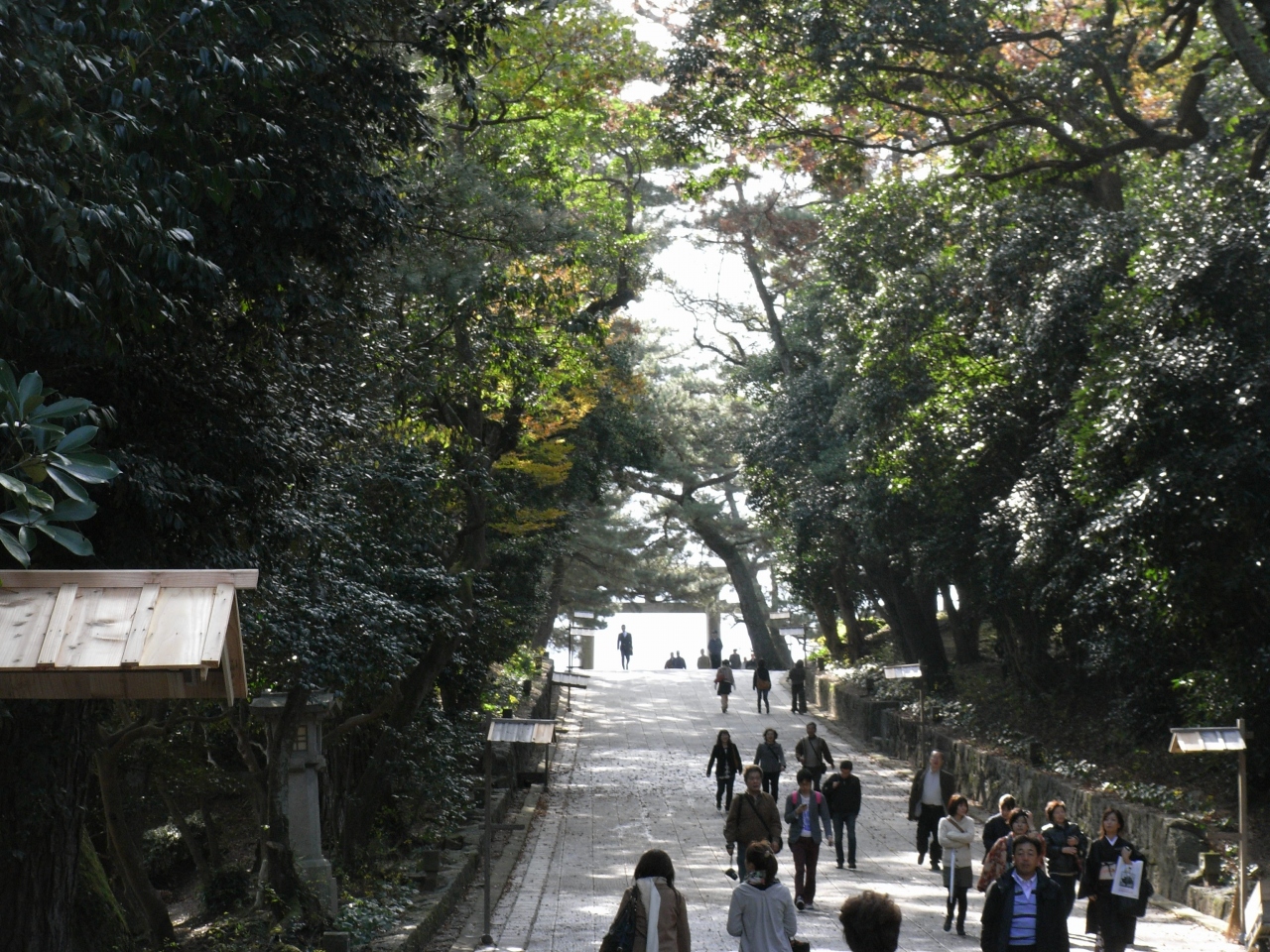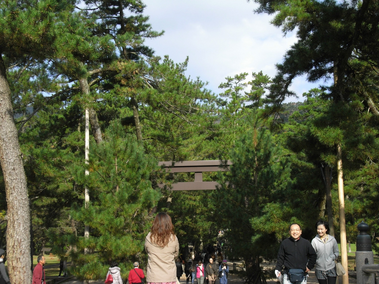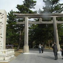 駐車場からではなく、4つの鳥居をくぐりながら早朝の参拝をおすすめします。大きな2番目の鳥居をくぐると少し坂道になっています。参道が下っているところは珍しいと思いました。しめ縄は大迫力です。因幡の白ウサギで有名なオオクニヌシの尊の優しさが感じられるお社でした。柱の跡という目印があり、大きくて高いお社がかつて実際に存在したと思うと感慨深いです。