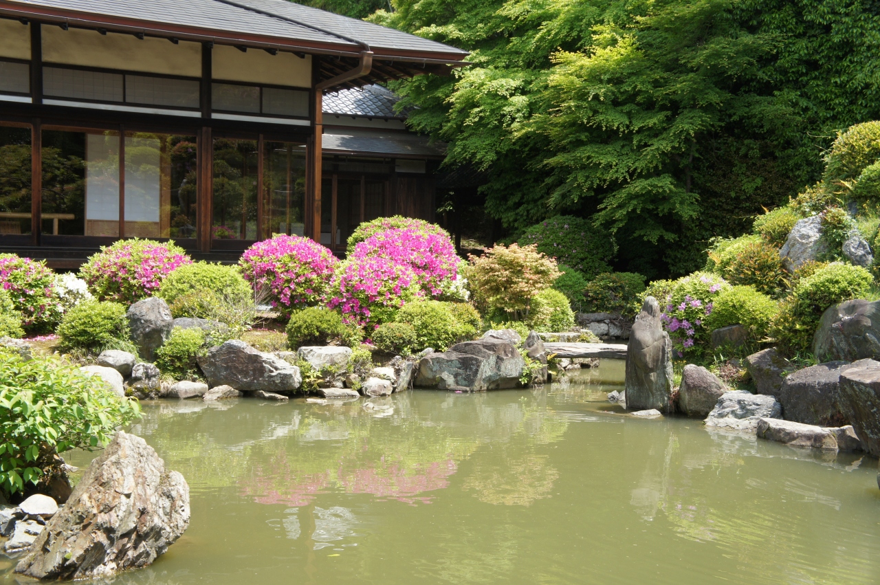 京都市内で手軽につつじを見るなら、この智積院がお勧め。池の上に突き出た縁側に腰掛けて、正面の築山を眺める庭園はこの時期が一番きれい。ただ、逆に、季節外れだと、ちょっとがっかりかも。本来は、石組みの見事さを鑑賞するように造られているのですが、やはり、素人の我々としては、花が咲いたり、緑が美しくないと感動しないですから。