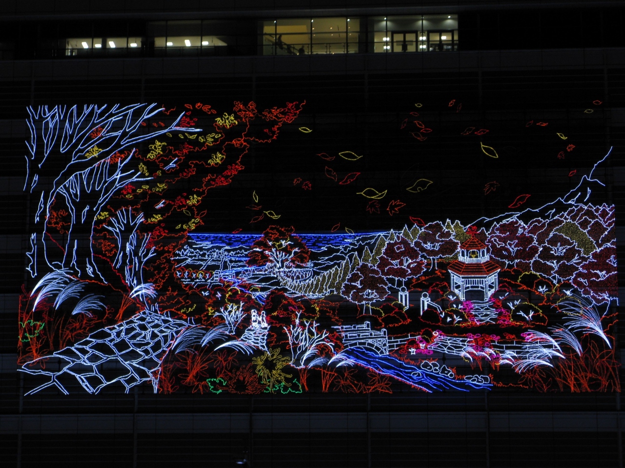 毎年クリスマスシーズンになると、壁画のような大きなイルミネーションで飾られます。毎年テーマが変わりますので、飽きませんよ!!大名古屋ビルディングの下あたりが、観賞場所として最高です・・・いろんなシーンが出てきますので、あせらずじっくり見るのがコツですよ!!