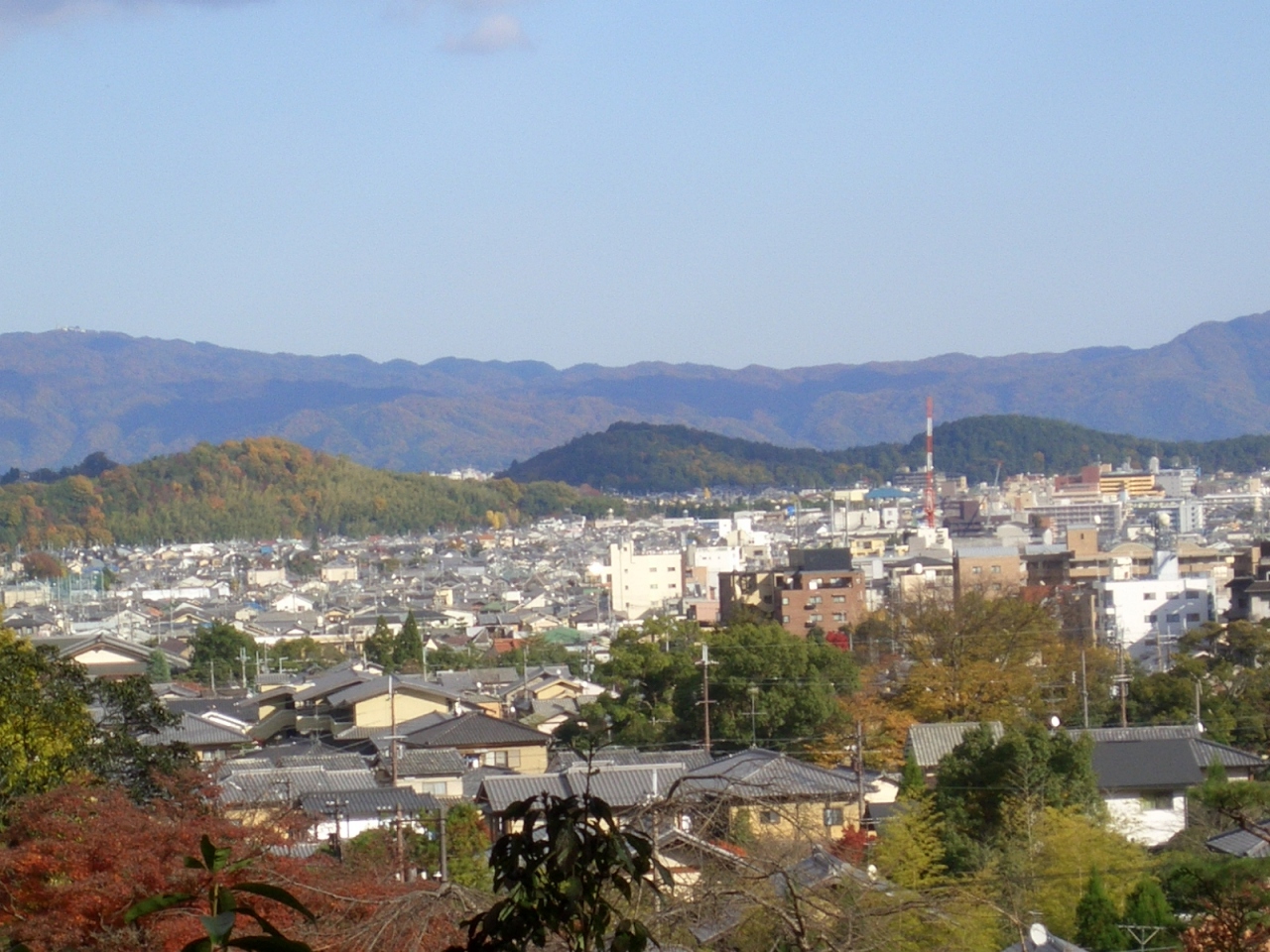 山の斜面をとりどりの紅葉に染められ、何故か哀愁を感じられるのは一人旅のせいかしら?中腹から京都市内が一望する事が出来ます。歌人の定家が愛したこの景色、二尊院、厭離庵と共に時雨亭はこの寺にもあったという跡があります。