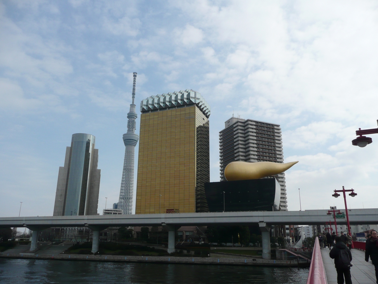 あと一週間後の2012年5月22日にオープンする東京スカイツリー。様々なスポットがあるようですがMy best spotはこの画像からの角度。アサヒビールの黄金の雲?とスカイツリーをセットにしてパチリ!アクセスは都営地下鉄浅草線浅草駅からアサヒビール方面に歩いてスグ!