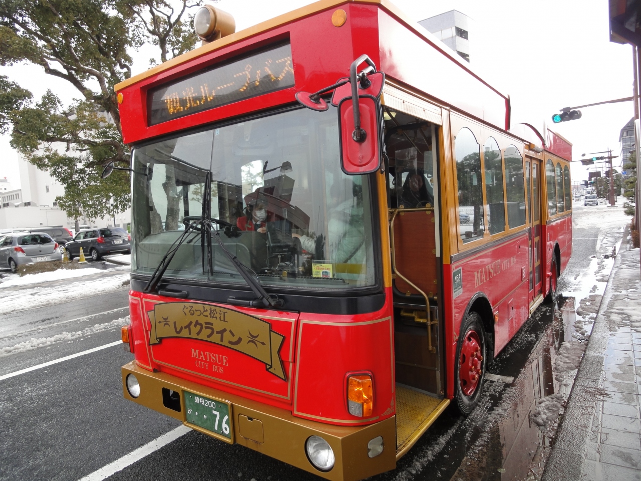 松江市内の観光どころを50分かけて巡回してます(20分に1本、冬は30分に1本)。乗車賃は200円です。出張の帰りに松江駅で1時間の時間があったので、途中下車せず一周してみました。