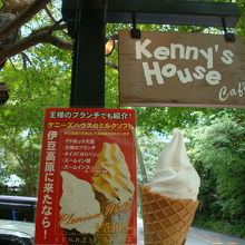伊豆の道を歩いていたら、「王様のブランチでも紹介!!」と大きく書かれたソフトクリーム屋さんを発見。色々なテレビ番組に、伊豆高原の名物として紹介されたそうです。