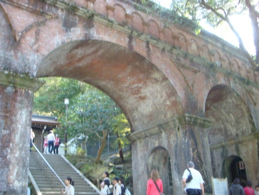 南禅寺自体には入ったことがないのですが(スミマセン…)よく永観堂に入ったついでに南禅寺方面に歩いていき、水路閣と呼ばれる疎水橋を見に行きます。明治時代にローマの水道橋を手本に作ったものらしく、和風の京都のなかにぽつんとある洋風な感じがなんだかいい感じで好きなんです。
