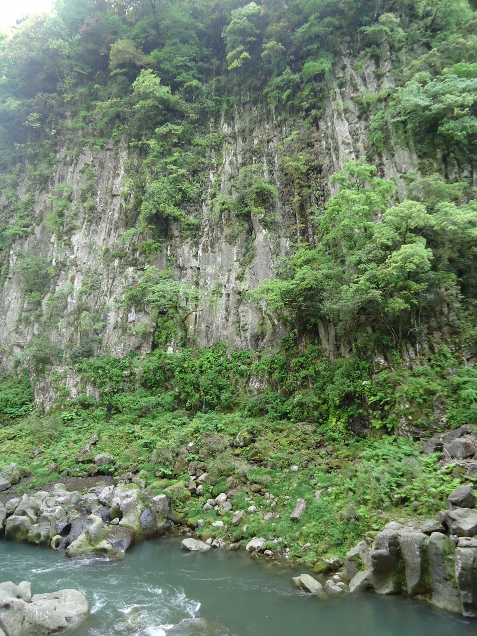 高千穂峡は、その昔阿蘇火山活動の噴出した火砕流が、五ヶ瀬川に沿って帯状に流れ出し、急激に冷却されたために柱状節理の懸崖となった渓谷です。