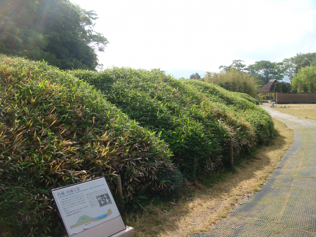 堀や土塁など城の地割が当時の姿のままよく残っています。