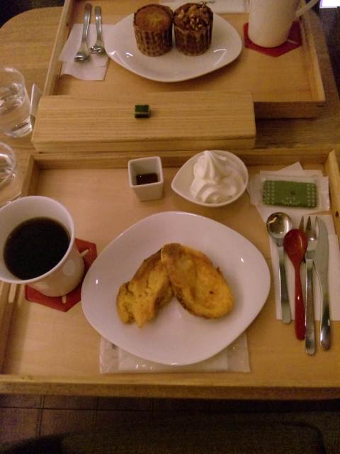 友達のフレンチトーストです。自分はマフィン2個も(笑)小腹じゃないだろー!って感じですよね(笑)コーヒーもたっぷるでなかなかの満足感でした。ちょっと小腹に最適のスポットです。