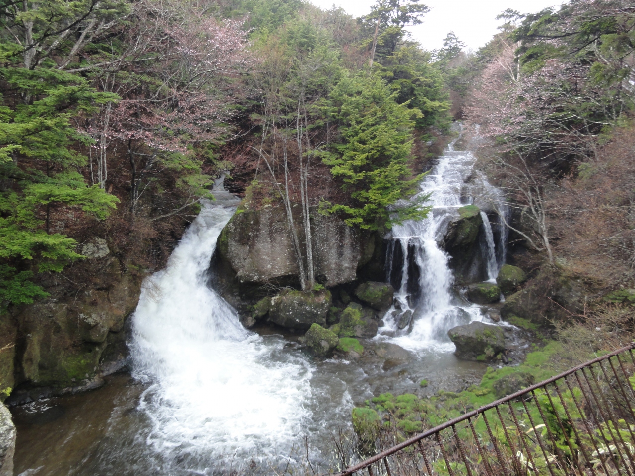 日光の三瀑布の一つです。華厳の滝、湯滝、竜頭の滝とそれぞれ趣が違います。華厳の滝を素通り、二つの滝を見ましたが、竜頭の滝は二方向から落ちてくる繊細な感じの滝でした。滝を見る場所も道路からすぐの土産物店の店先で、お茶でも飲みながらゆっくり眺めていたいと思いました。残念ながら雨で肌寒く、さっと見学するだけに終わりました。