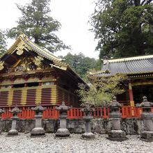 表門から入るとすぐのところにあります。上神庫、中神庫、下神庫と3つの建物には、「百物揃千人武者行列」に使用される1200人分の装束や舞楽用の装束などが収められているそうです。見学した日は、祭事の準備で神輿舎も開かれていました。装束を持って陽明門を出入りする人も居て、どこから出しているのかと思ったら下神庫からでした。