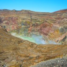 ロープウェイで上に登り上には硫黄のにおいが漂っていてカルデラから煙が湧き出ているのが見えました。