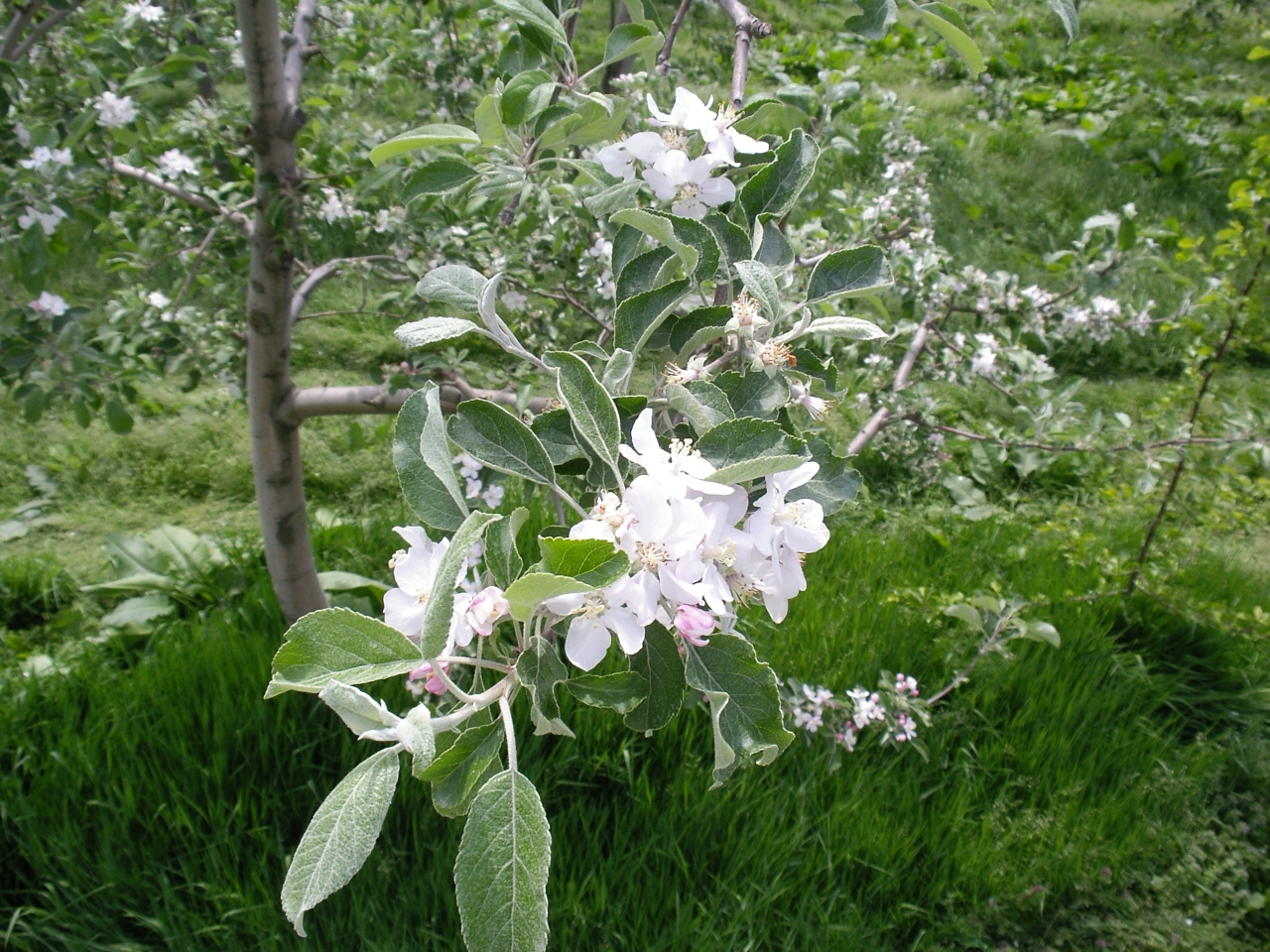 日本一のりんごの生産量をほこる青森県弘前市のりんご畑の中(←この道をアップルロードと呼ばれています。)通っていると,見えてくるのがこの弘前市りんご公園があります。この公園の真ん中あたりには小高い丘がありそこからあたりを見渡すと,この時期はあたり一面りんごの花で真っ白です。(←りんごの花の見ごろは桜の花が散ってから,2週間くらい後です。)とってもきれいですよ。これが,秋になると,あたり一面がりんごの赤一色になり,違う一面がみれます。弘前はりんごと桜が有名ですが,りんごの花もきれいですよ。