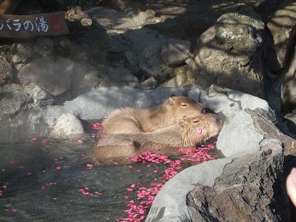 温泉に入るカピバラのかわいいこと。ただのでかいネズミと侮るなかれ。