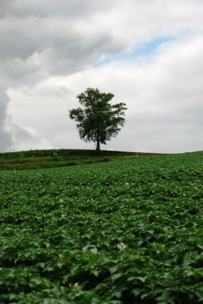 美瑛の丘にすっくと立つ「セブンスターの木」。その昔、セブンスターのCMになったことから命名されたそうですが、残念ながらそのCMは知りません。ただ、丘の町美瑛の畑の風景と孤高の木の取り合わせは絵になる光景です。美瑛の観光案内所で、見所mapがもらえますので、それを参考にまわると早くたどりつけます。