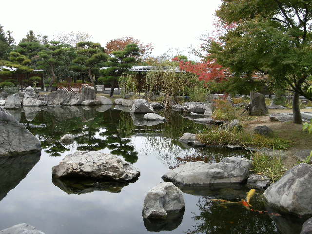愛媛県庁の脇から登ると、途中に二之丸史跡庭園があります。入園料100円が必要ですが、池を中心とする美しい日本庭園、二之丸御殿の間取りに沿って区画された柑橘園があり、出口付近の休憩所には、柑橘園で収穫されたみかんが置いてあって、自由に食べれました(11月下旬で、ちょうどみかんの収穫時期だったからでしょうが)。