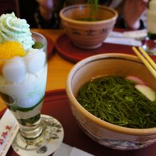 茶そばも頼んだのですが、茶そばというより、緑の麺、という感じであっさりしているというか、特徴がないというか。。。食事として行くより、甘い物を食べに行くという気持ちで行った方がいいと思います。