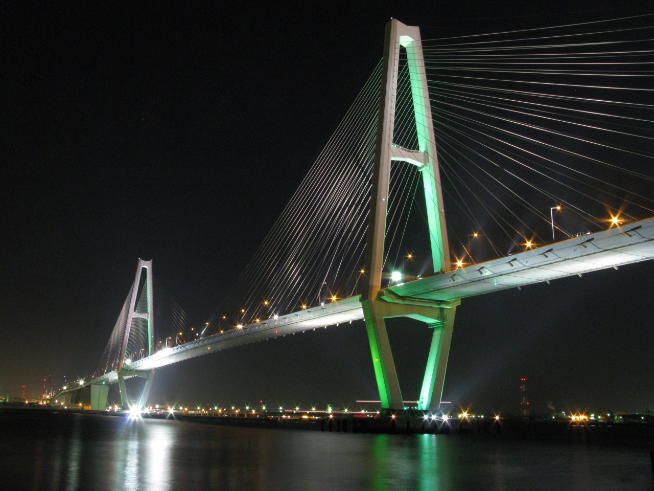 「海のトリトン」の唄を思い出します・・・夜景がキレイな橋です。全部で3つの橋があり、それらを総称して「トリトン」と呼ばれています。夜は、橋ごとに違う色でライトアップされます。(電力制限が無ければね・・・)キレイですよ!!