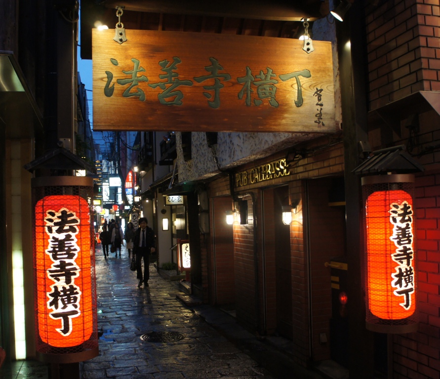 以前、大阪で勤務していたことがありますが、ミナミに足が向くことはほとんどありませんでした。ごちゃごちゃしている上に大阪のディープな部分を感じて、転勤族にはどことなく距離感があったためです。そこで久々に観光で歩き、前から気になっていた法善寺横丁に向かいました。夕暮れだったのですが、整備された細長い石畳と店の薄明かりが良い雰囲気を醸し出しています。左右には食通好みの老舗風和食屋さん。もう少し遅い時間になると、クラブやスナックの存在も見えてきそうです。ふと京都の先斗町のことを思い出しました。安い店はなさそうだけど、おなじみの店とかできたら楽しそうだなあ。