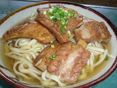 私はソーキそばを食べました。ソーキがたっぷりのっています。
