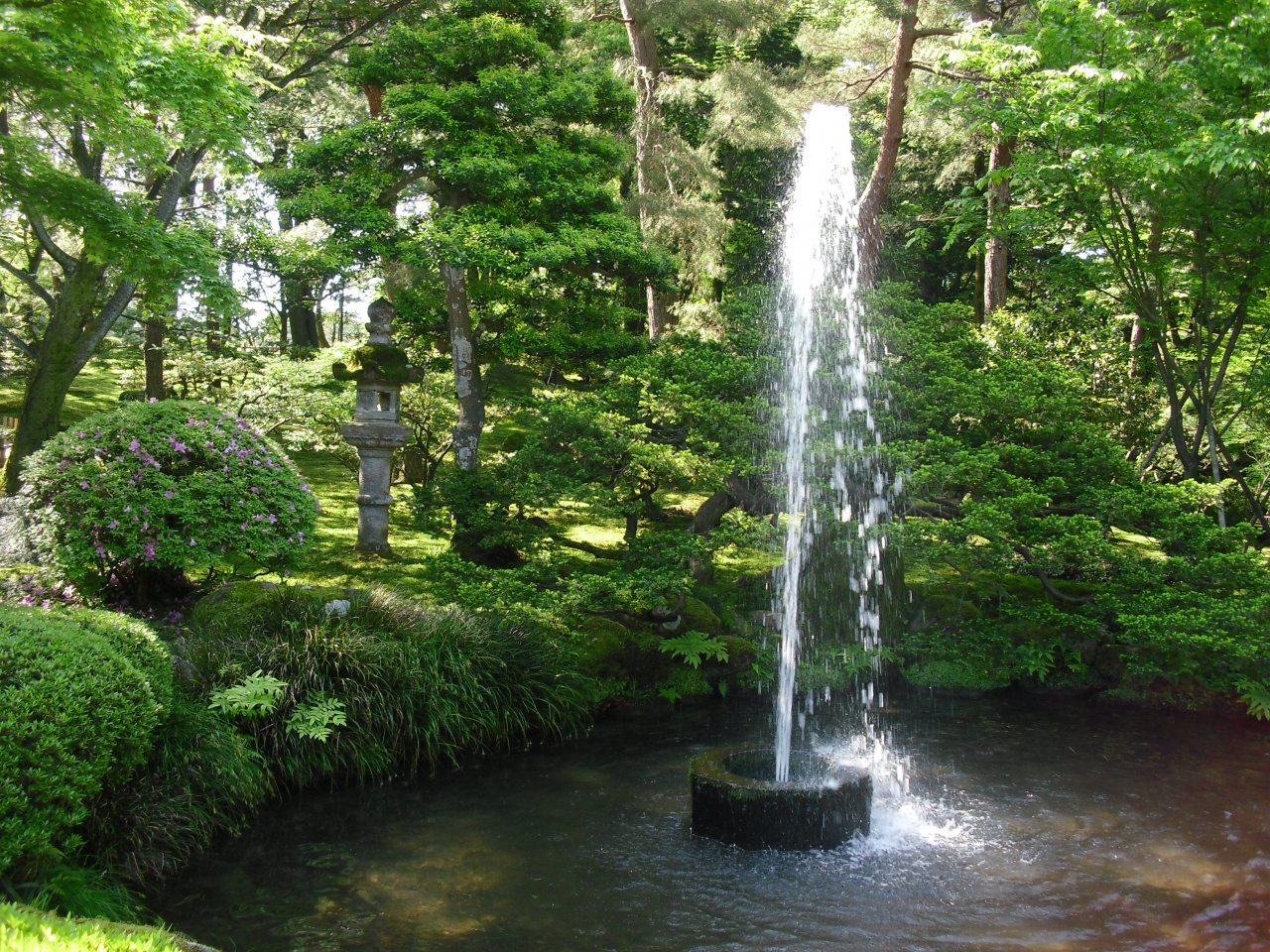水源は兼六園内の霞ヶ池からひいてきて水位の高低さ、つまり自然の力だけで