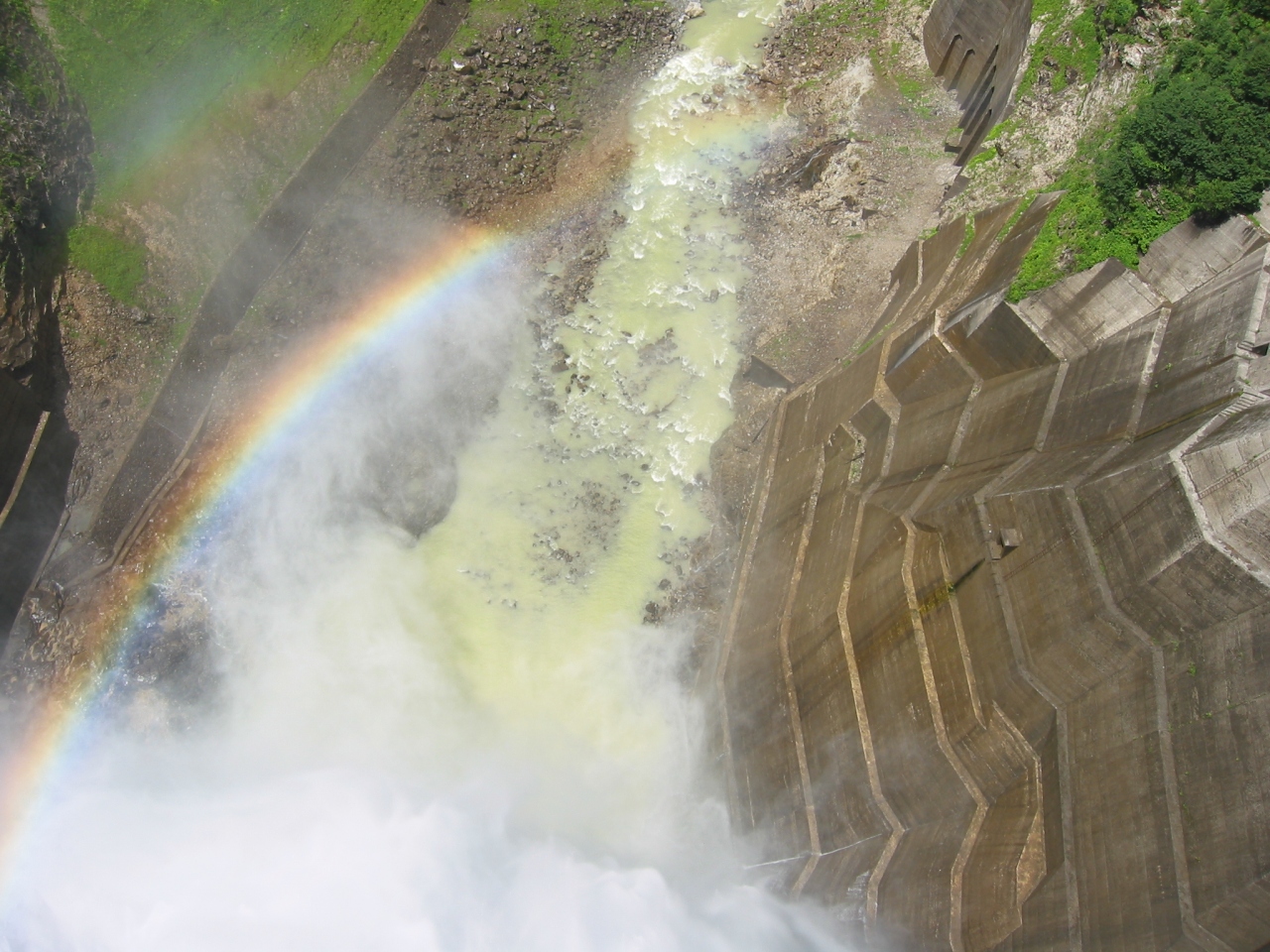 いつも放水しているとは限らないみたいですが、ちょうど放水に虹がかかっているのを見ることができました。