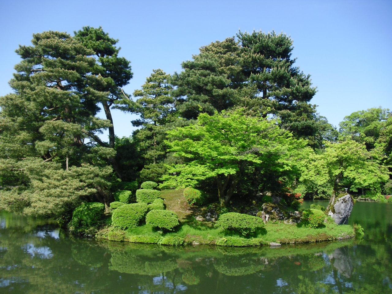 池の真ん中には亀の形をした島があり、亀甲島と呼ばれています。