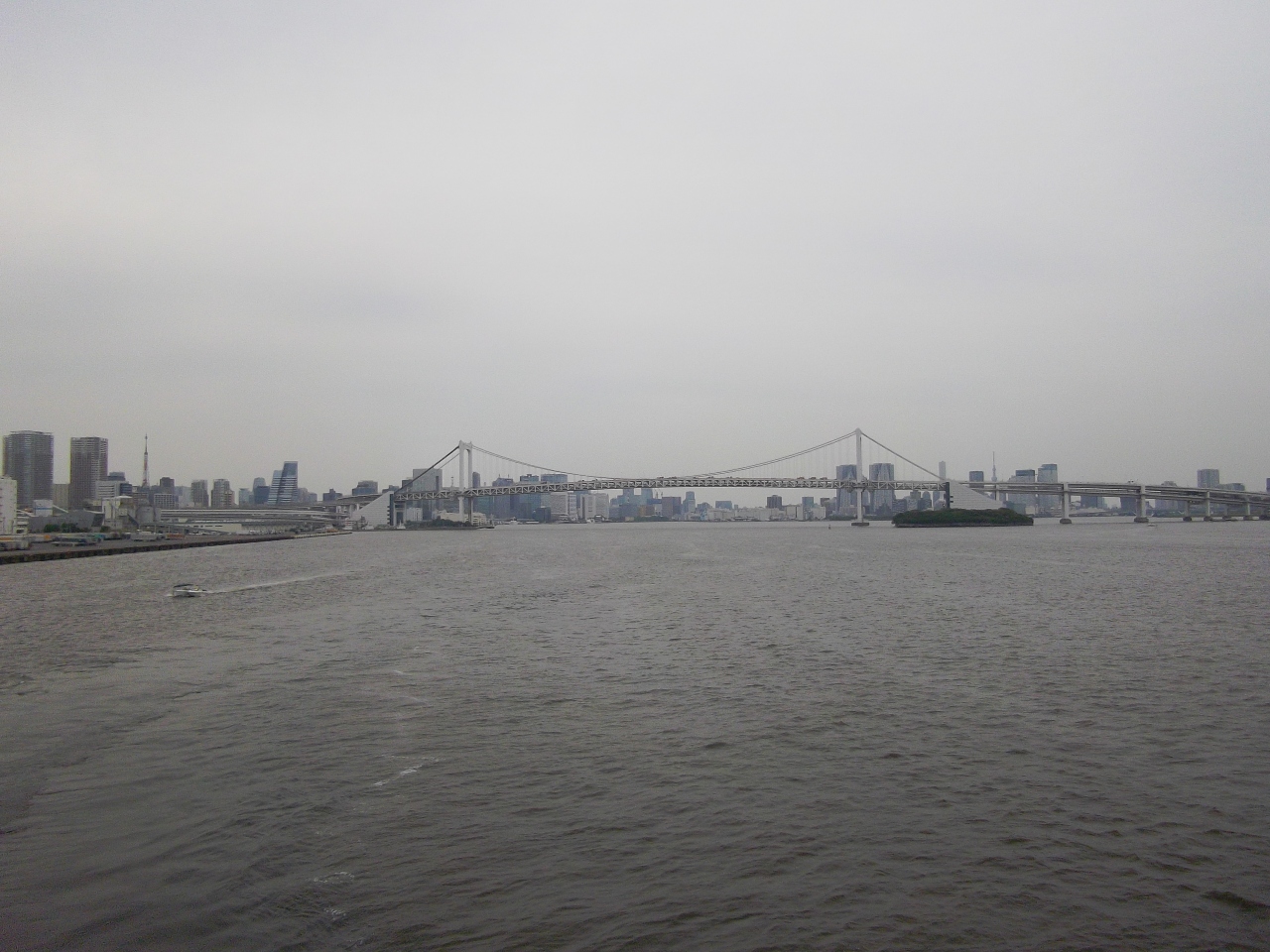 レインボーブリッジを越して振りかえると、東京タワーとスカイツリーが視野に入ってきてこの風景も良いなと思いました。