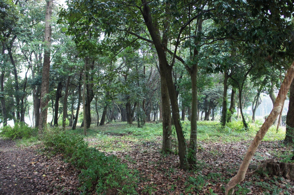 橿原神宮の東側には橿原森林遊苑という広大な森がありました。これだけの自然がよく残っていたなあ、と思ったら、紀元2600年の1940年、全国各地から寄せられた樹木を植樹して造られた森林植物園だったのです。既に70年以上経過しておりあちこち巨木があり、鬱蒼とした森の中は静まり返っていました。雨が降っていたためか、人がほとんどおらず、歩いていると、なーんか心細くなっちゃいました。