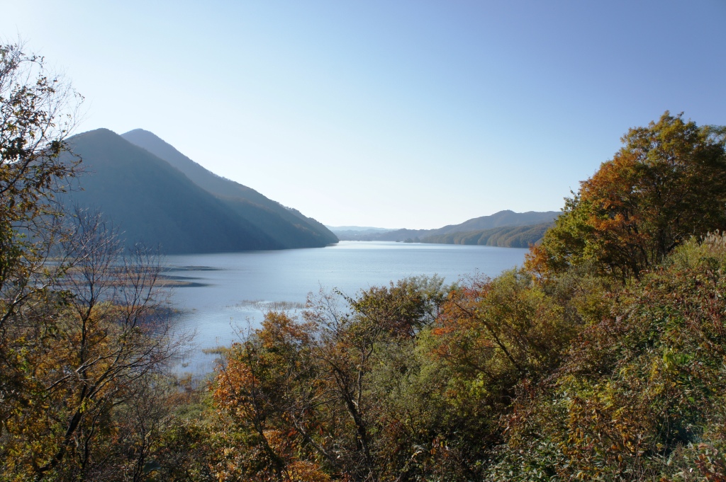 裏磐梯方面から磐梯吾妻レークラインに入ると、最初に見えてきた大きな湖が秋元湖でした。美しい湖面とその向こうに見える磐梯山。すでに紅葉が終わった時期でしたが雄大で美しい光景で、思わず車を停めて写真を撮りました。ただし、こうした路上駐車はお勧めしませんけど。ところで、秋元湖って1888年の磐梯山噴火まで存在しなかった湖なんですね。噴火で山体崩壊が発生し、流れ込んだ土砂が川をせき止めてできたそうです。1度の噴火でこんな湖までつくっちゃうなんて、自然のエネルギーの壮大さを感じてしまいます。