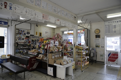 今回訪れてみたところ、三鉄の小さな宮古駅駅舎内には≪がんばれ三鉄≫などの寄せ書きやメッセージが多数。復興祈願も込めた新グッズがいろいろ売店に並んでいました。