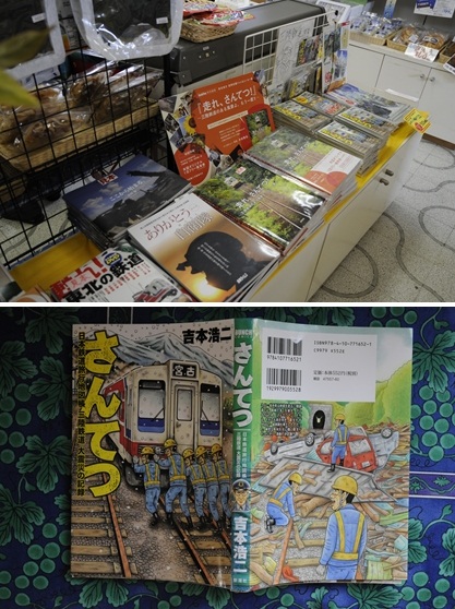 私は、大震災直後からの三鉄や周辺の人々の様子をドキュメンタリータッチの漫画+資料で著した≪さんてつ≫を買ってみました。大震災の後を乗り越え、未来に希望を繋いで行こうという≪さんてつマン≫や周辺の人たちの奮闘記作品になっています。見本も出ていたので手に取ってみるといいですよ。