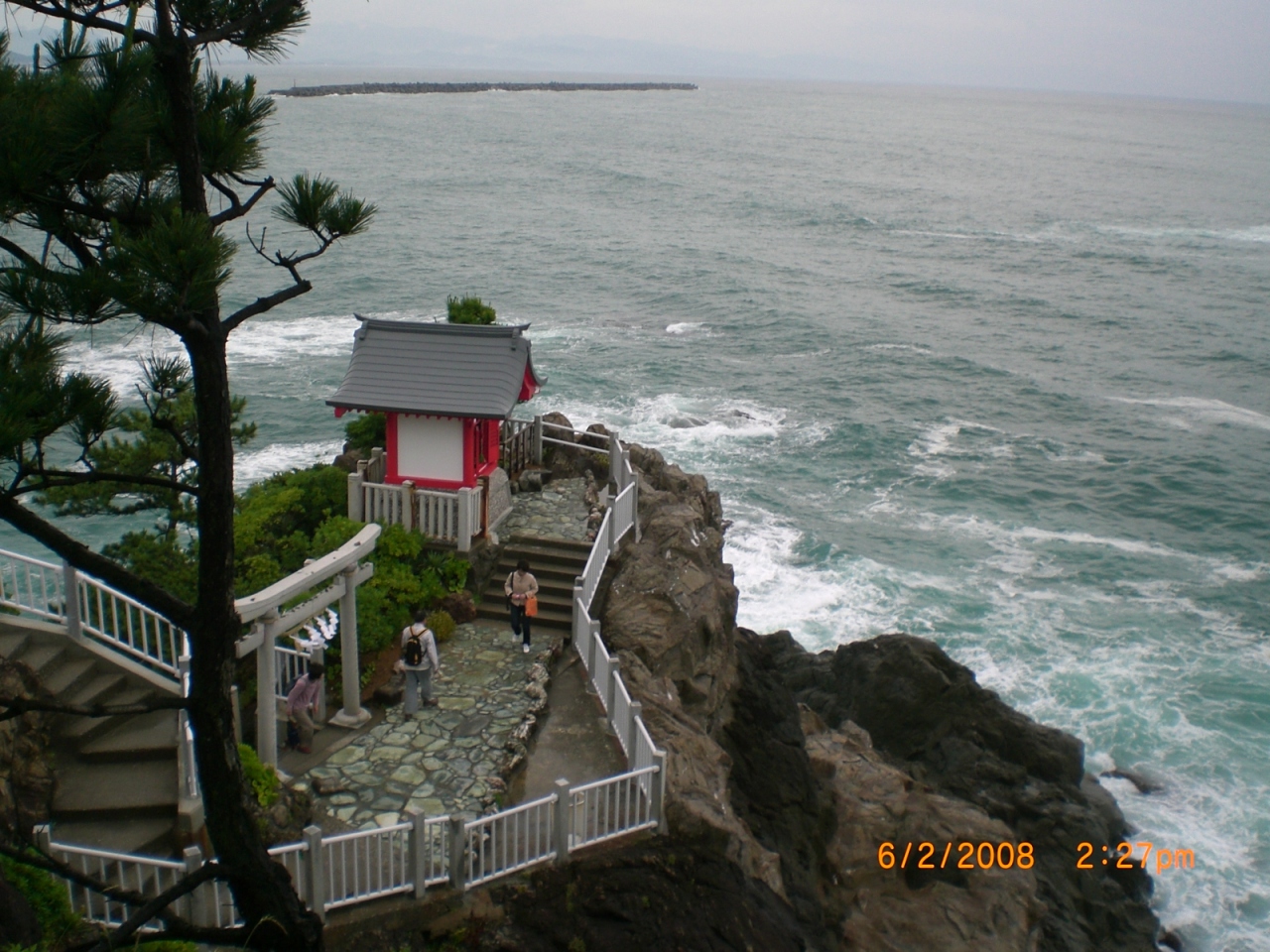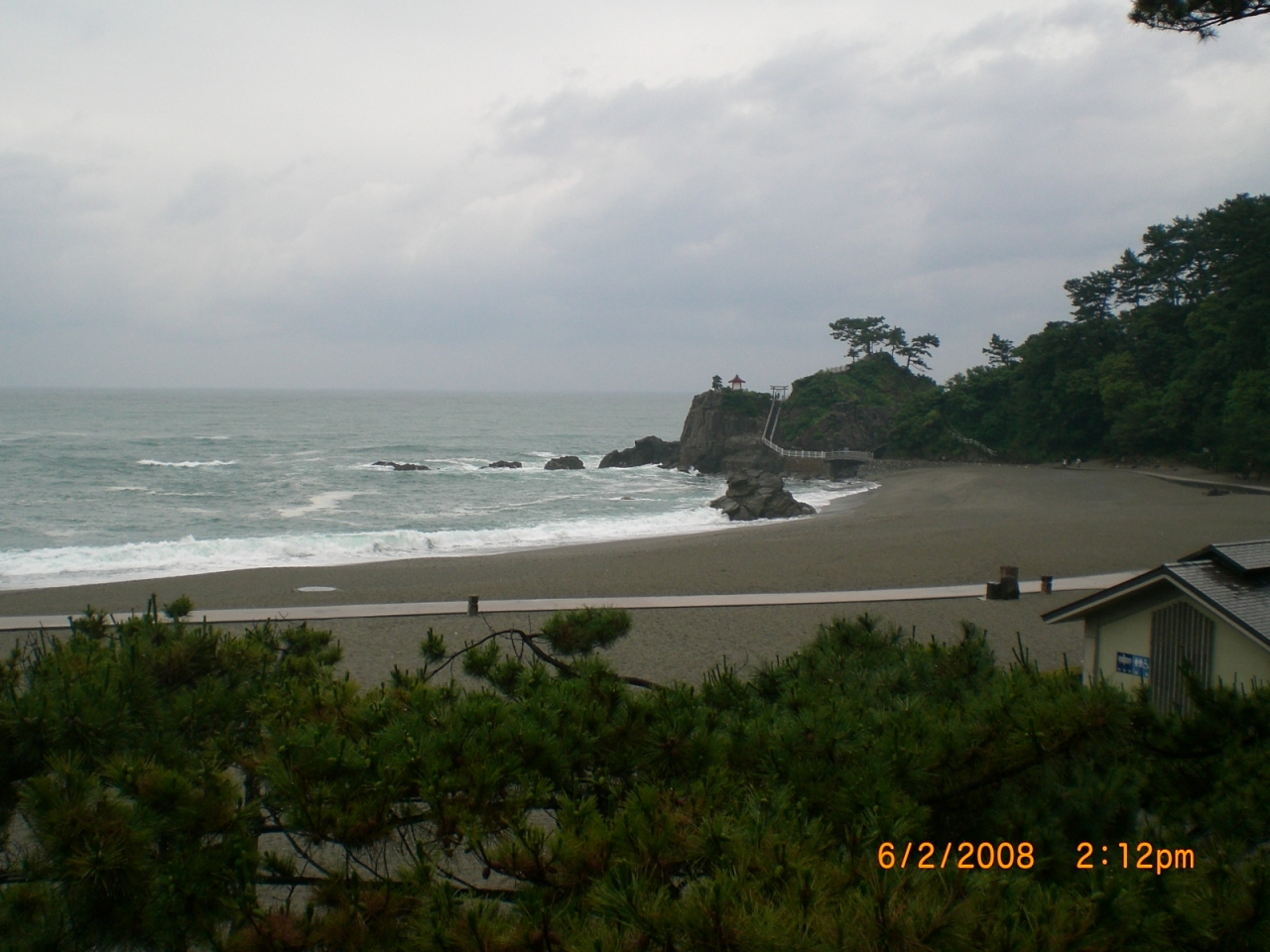 JR高地駅から路線バスに乗り、最後のバス亭で下車すると、すぐに「桂浜」が見える、小高い丘の上に 坂本 竜馬の大きな象が立っているので、決して迷う事はない。 丘から階段を下りて行くと 砂浜に行くが、波が高いようで遊泳は禁止されている。