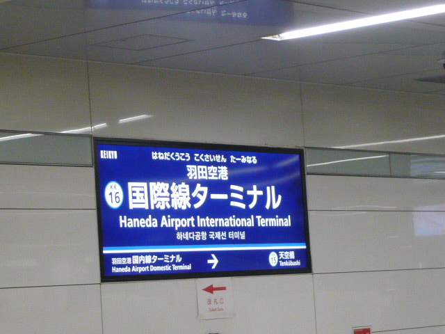 羽田空港の国際線ターミナルには、モノレールの国際線ビル駅と、京急の国際線ターミナル駅の2つがあります。モノレールは改札を出ると目の前が出発ロビーなのでとても便利ですが、京急の方はとてもややこしい構造となってます。下り電車は地下2階にホームがあり、改札を出た後にエスカレーターでロビーへ行きますが、上り電車は到着ロビーの地上2階に改札があり、改札を通った後に地下のホームへエレベーターで移動します。
