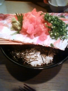 威勢の良い従業員に、まぐろがぶりのかまが大きくて度迫力