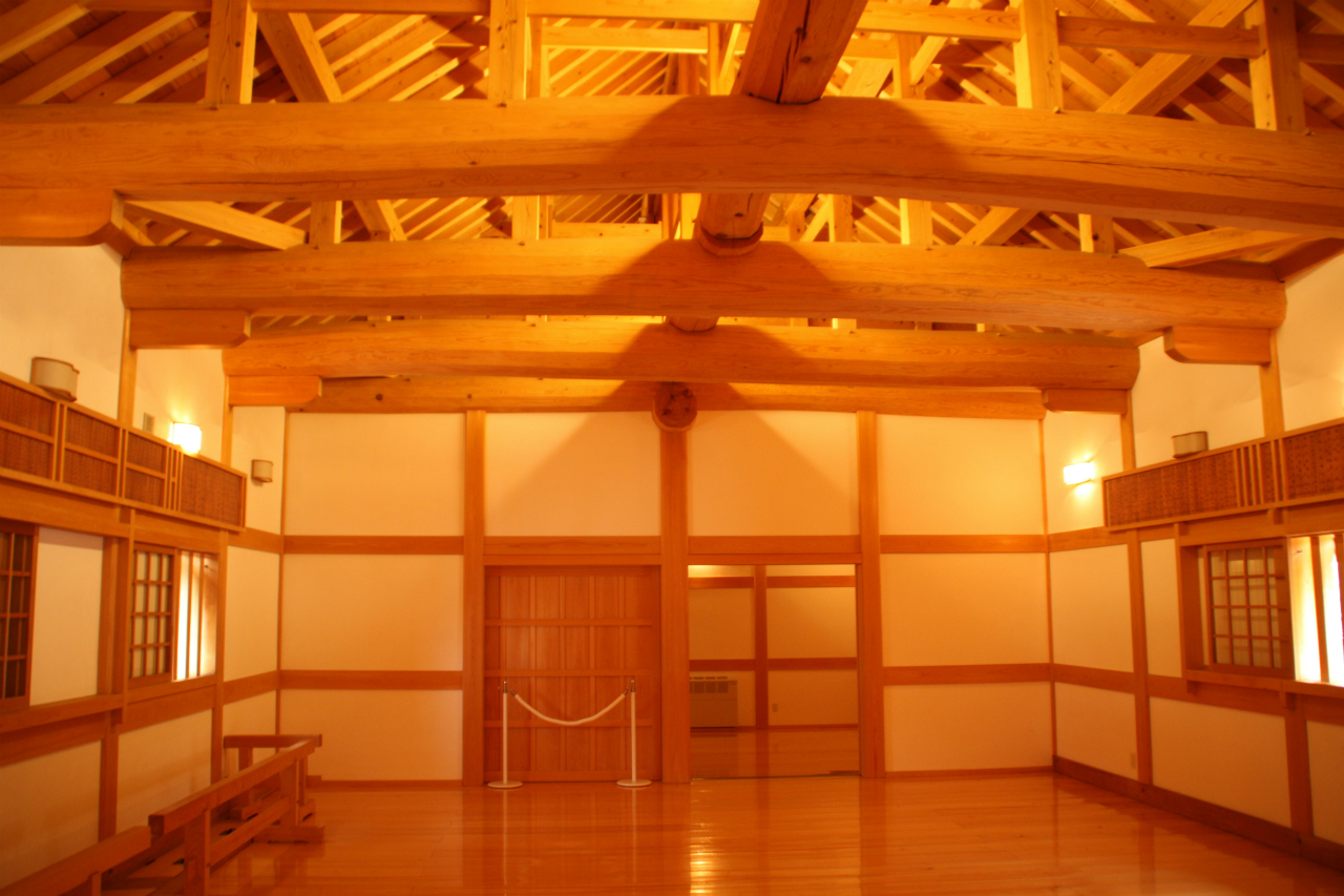 鉄御門はくろがねごもんと読みます。鉄御門は多数の市民の寄付で平成19年9月に再建されました。鉄御門の3面は多門櫓と櫓門、表側は高麗門と土塀で囲まれた厳重な構えの枡形門です。内部は想像以上に広く天守が小さく思えます。鉄御門の冠木は1本で1000万円もしたそうです。