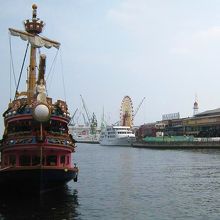 施設の一部には入場無料の遊園地があります。写真に観覧車が見えますが南側にあります。シーサイド2階のデッキからはメリケンパークの景色を楽しむことができます。
