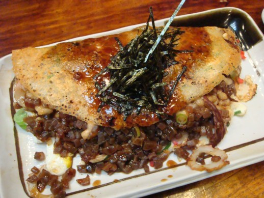 こんにゃくやら竹輪やら、何でもかんでも入ってるちょっと甘辛ダレの不思議なお好み焼きが看板商品のお店です。入り口に楽しげな人形やら何やらが置いてあり記念撮影している観光客も沢山います。割と遅くまでやっているので、遊び歩きすぎて夕飯食べそびれちゃった…でもチェーン店は嫌だし…って時にはいいかもしれないです。