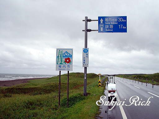 サロベツ原野です。バイクや車の場合、30kmほど給油所がなかったはずですので、この地域に入る前に念のために燃料確認したほうがいいですね。人口密度が極端に低い日本離れした景観で、都会人には癒されるかも?しかし長居しているとどうしても人恋しくなって人ごみに行きたくもなってきます。(笑)