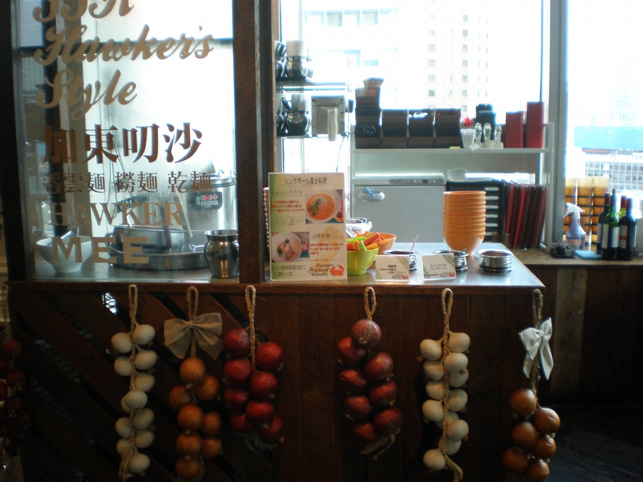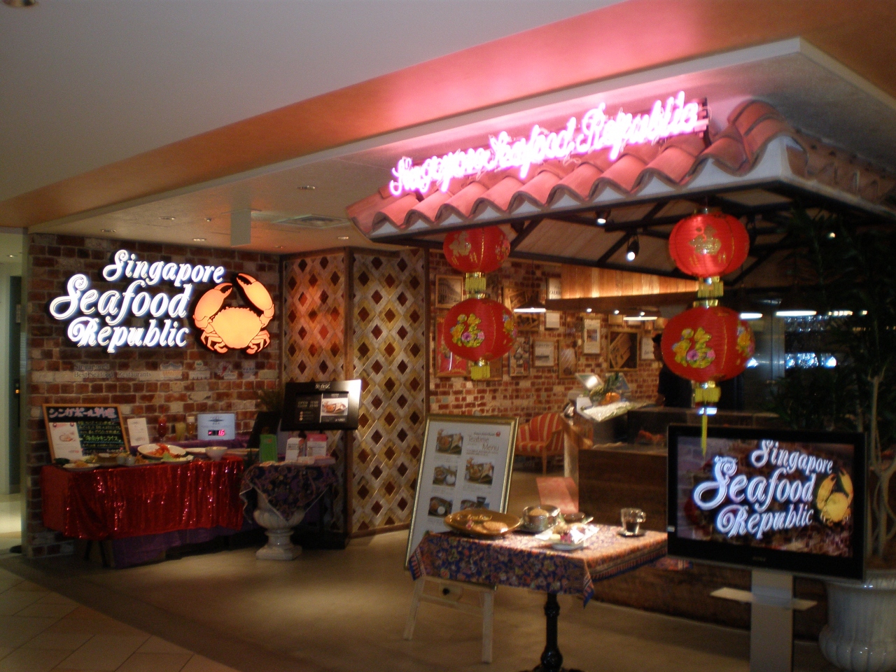 シンガポールで食べたチリクラブの味が忘れられなくて、その店が大阪梅田にある事を知り早速行きました。大丸梅田店の14階で生きたマッドクラブが店先に沢山居て、ワクワクしました。店員さんもフレンドリーで感じよく、ランチはお値打ち価格でいろいろと食べる事が出来ます。屋台のお粥コーナーやラーメンなど,アジアンティックな雰囲気の中