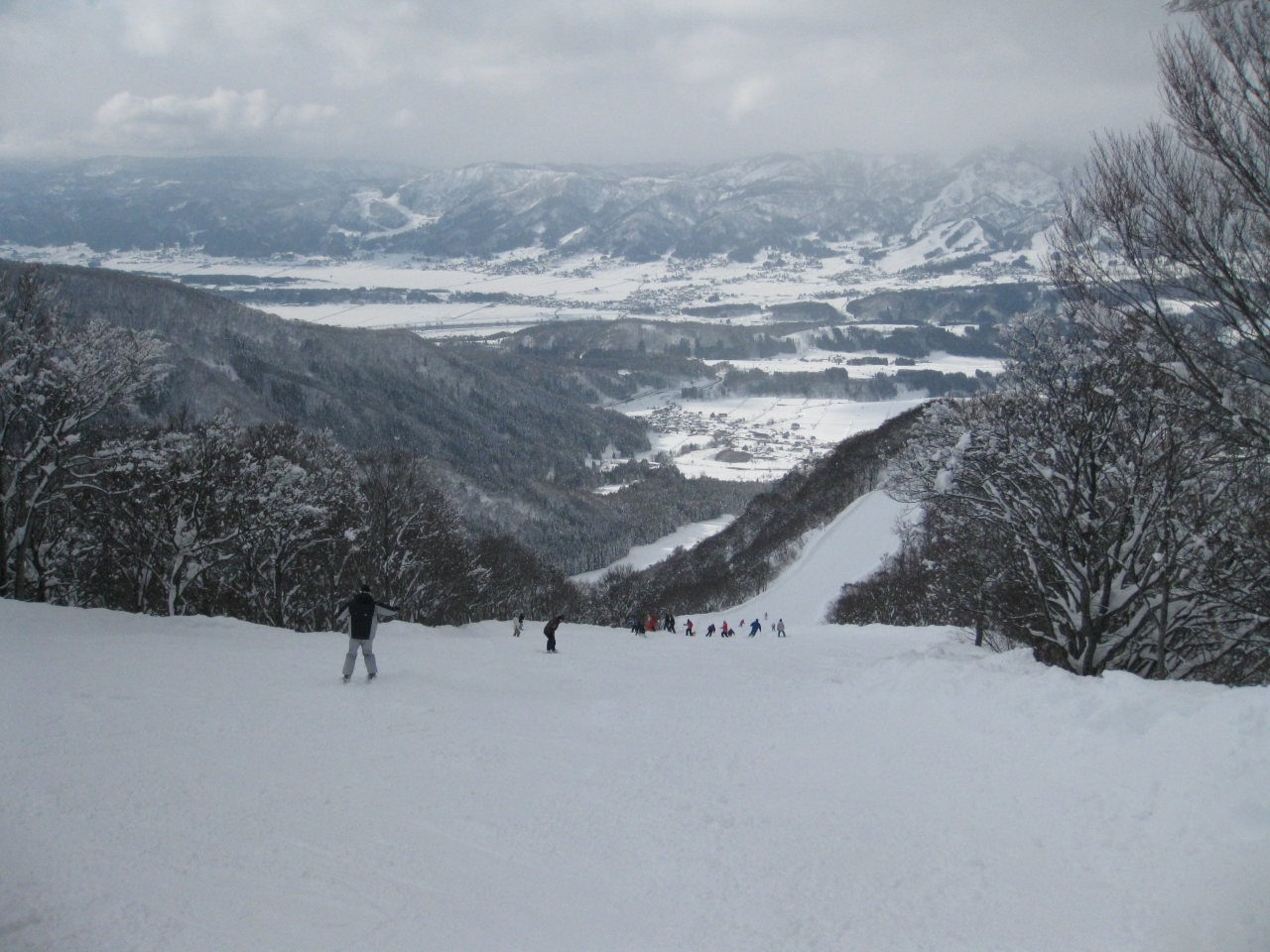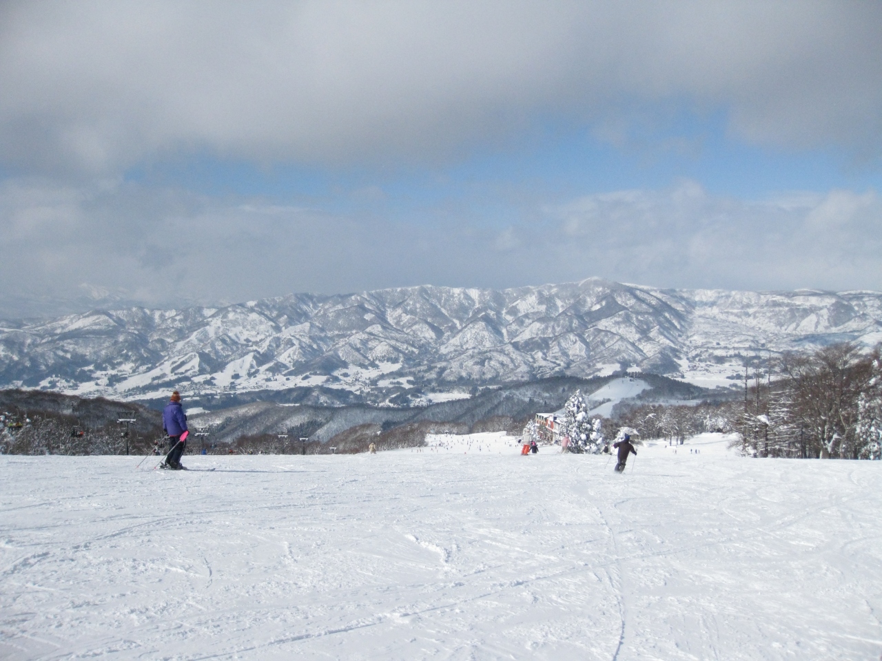 ゲレンデからは、眼下に野沢温泉の街並み、その向こうに信州の山々が広がり、滑っていてもとっても気持ちが良いゲレンデです。