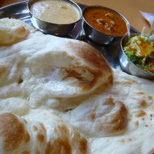 カレーは種類によって辛さが物足りなく感じたものもありましたが、それなりに満足。ナンは大きくバターたっぷりでとても美味しかったです。