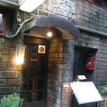 神保町には何軒かレトロな喫茶店がありますが、こちらはその中の一軒です。細い路地裏にある色あせたレンガ造りの建物。看板もレトロです。店内は一段下がった半地下で、小さめなテーブルと椅子が並んでました。