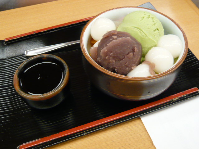 メニューは舟和の商品である芋ようかんやあんこ玉、抹茶のセットだけでなく、あんみつ、おしるこ、パフェ、くずもち、お雑煮、ところ天などもありました。