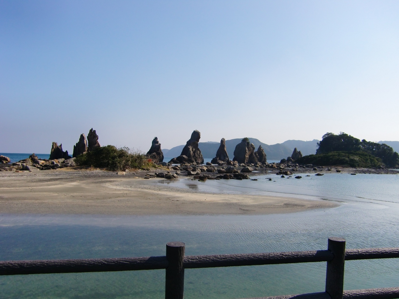 まるで歯抜けのような変わった形の岩が並ぶ壮観な海岸です。遠くから眺めるだけではなく、海岸に降りて岩の近くを散策できます。ここには無料の駐車場があり、お土産屋さんもありました。よく観光地にいる有料の写真屋さんもいました。