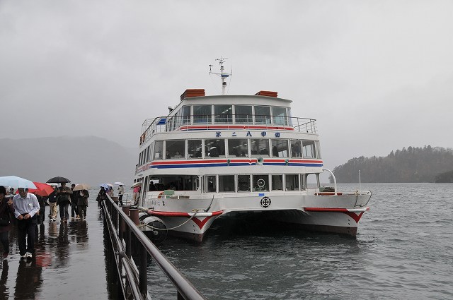 奥入瀬の入口である子ノ口から遊覧船にのって30分少々。十和田湖の中心である休屋に到着します。休屋にはお土産屋やホテルが集まっています。湖畔の遊歩道を歩けば有名な乙女の像や十和田神社に行くこともできます。